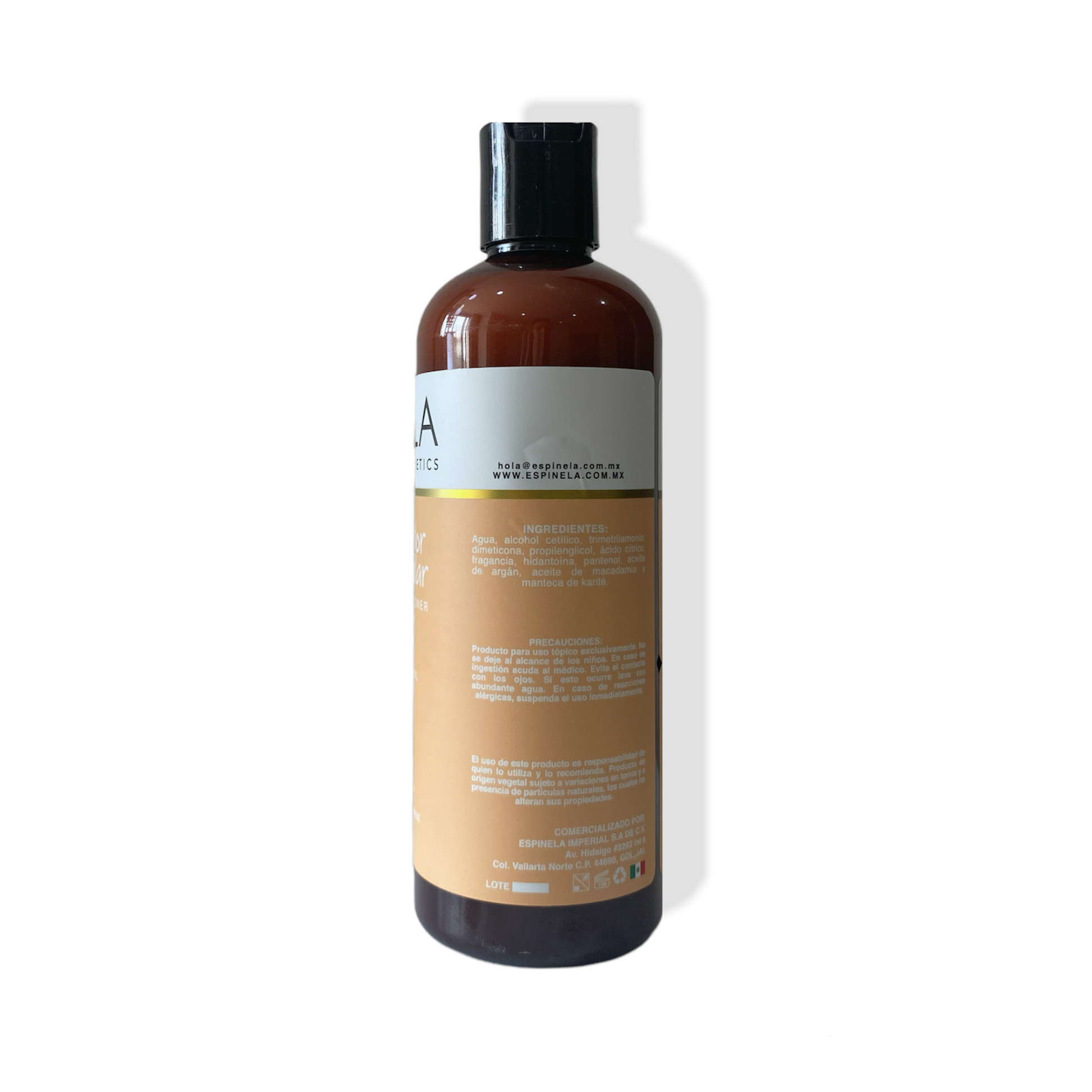 Agua, alcohol cetílico, trimetrilamonio, dimeticona, propilenglicol, ácido cítrico, fragancia, hidantoína, pantenol, aceite de argán, aceite de macadamia y manteca de carite